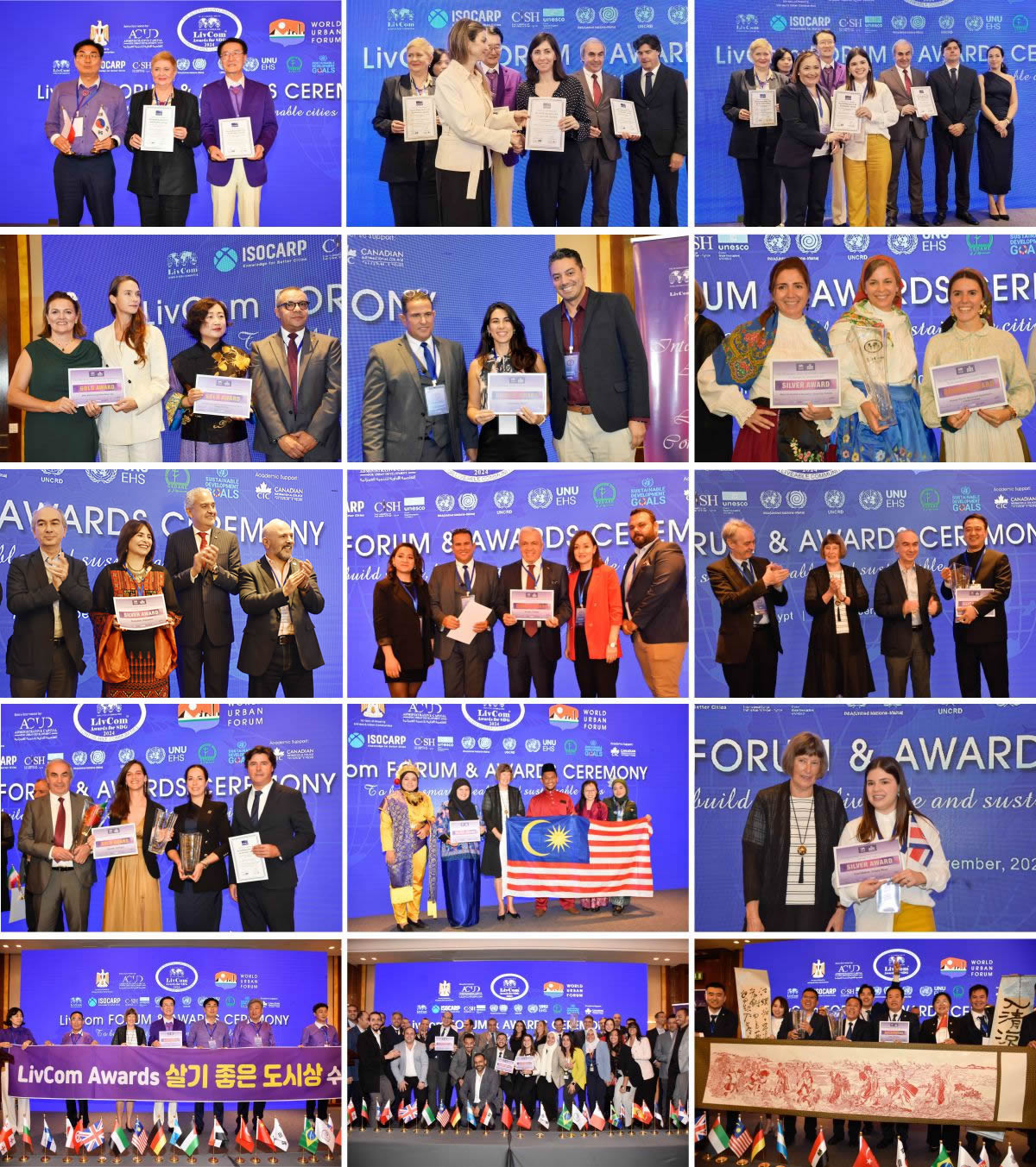 After two days of online and in-person presentations, for Category A (population up to 20,000) of the Whole City Award, the first place with Bronze was presented to Caodian Community, Chinese Taipei, and the second place with Bronze to Lidzbark, Poland. For Category B (population 20,001-75,000), Águeda, Portugal won the first place with Gold; Shinan-gun, South Korea, the second place with Gold; Ostrow Wielkopolski, Poland, the third place with Silver. For Category C (population 75,001-150,000), Mafra, Portugal won the first place with Silver; Curridabat, Costa Rica, the second place with Silver; Canelones, Uruguay, the third place with Bronze. For Category D (population 150,001-400,000), the first place with Silver was presented to Yangjiang, P.R. China; the second place with Silver to Braga, Portugal. For Category E (population over 400,000), the first place with Gold was presented to Yantai, P.R. China, the second place with Gold to Cape Town, South Africa, and the third place with Gold to New Administrative Capital, Egypt. Regarding Project Award, the BAM – Biblioteca degli Alberi Milano of Italy won the first place with Gold; the İzmit Gulf Fish Stok Enchancement Project in Kocaeli of Türkiye, the second place with Gold; the Guangyanggu Urban Forest Park in Xicheng District, Beijing of China, the third place with Gold. As for Technology & Solution Award, the Intelligent Transport System in Katowice: Enhancing Urban Mobility and Sustainability of Poland won the first place with Silver; the Mafra: On the Path to Becoming a Smart City of Portugal, the second place with Silver; the Business Environmental Management of Crumb Rubber Concrete Products from Rubber Waste Recycling in Tehran of Iran, the third place with Silver. (For more information on award winners, please visit http://www.livcomawards.org for the full winner list)